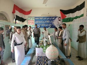 وفي الإفتتاح، أطلع الوكيل عامر ومعه مدير أمن المديرية العقيد عبدالله المطهر، ومسؤول التعبئة العامة ياسر الحسني، ومدير قطاع التربية محمد عثمان، على محتويات المعرض من إبداعات الطلاب ولوحات فنية ومجسمات وأعمال يدوية متنوعة.