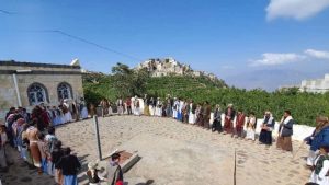 ورفع المشاركون في المسيرات التي نظمت في الساحات الرئيسية والميادين العامة والقرى بمديريات مناخة والحيمة الخارجية والحيمة الداخلية وصعفان العلمين اليمني والفلسطيني، واللافتات المؤكدة على ثبات موقف الشعب اليمني المساند للشعب الفلسطيني.