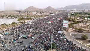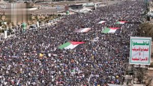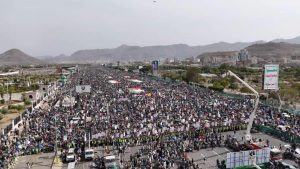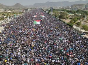 حشود جماهيرية كبرى بالعاصمة صنعاء في مليونية “ثباتاً مع غزة.. سنصعد في مواجهة جريمة الإبادة والتجويع”