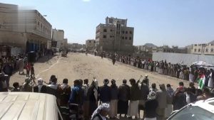 ورفع المشاركون في الوقفات التي نظمت في عزل الرسول الأعظم بمديرية سنحان وبني بهلول وجبل اللوز بمديرية الطيال، وغظران وذي مرمر بمديرية بني حشيش، العلمين اليمني والفلسطيني وشعار البراءة من أعداء الله.