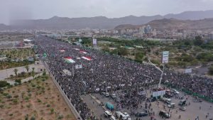 شهدت العاصمة صنعاء اليوم، مسيرة مليونية في يوم النفير والوفاء لرسول الله ونصرة للشعب الفلسطيني تحت شعار “لا أمن للكيان.. وغزة والأقصى تحت العدوان”.