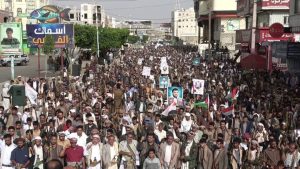 ورفع المشاركون في المسيرات،الأعلام اليمنية والفلسطينية،ورايات الحرية المناهضة للسياسية الأمريكية في المنطقة،واللافتات المعبرة عن التضامن مع الشعب الفلسطيني،والمنددة بتدنيس آلاف اليهود للمسجد الأقصى، و إساءتهم لخاتم الأنبياء والمرسلين محمد صلى الله عليه وآله وسلم.