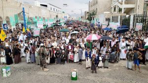 وجدد المشاركون في المسيرات العهد والبيعة والولاء للرسول الأعظم محمد صلى الله عليه وآله وسلم بالتمسك بمنهجه القويم.. منددين بجريمة الإبادة الجماعية التي يرتكبها الصهاينة في غزة، وما يقومون به من تدنيس للمسجد الأقصى على مرأى ومسمع العالم.