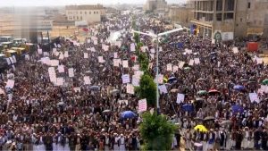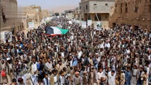 وعبروا عن غضبِهِم العارمِ إزاءَ الإجرامِ الصهيوني المتصاعدِ بحقِ الأشقاءِ في فلسطينَ في مشهدِ جسدَ الهويةِ الإيمانيةِ اليمنية والارتباطِ التاريخي والجهادي معَ الشعبِ والقضيةِ الفلسطينيةِ.