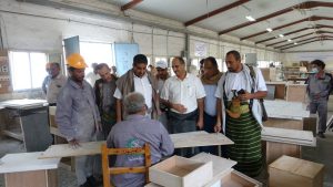 كما اطلعوا على جهود مستفيدي برنامج الدمج المهني في مجالات النجارة وتصنيع الأثاث المنزلي، واستمعوا إلى شرح مفصل من القائمين على المشروع حول سير التدريبات التطبيقية والميدانية المنفذة ضمن البرنامج، مؤكدين أن عملية التدريب تسير وفق الخطط والبرامج الزمنية المعدة مسبقًا.