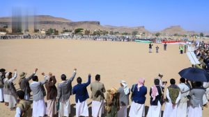 وقفة قبلية مسلحة في صعدة تنديداً بمجازر العدو في غزة