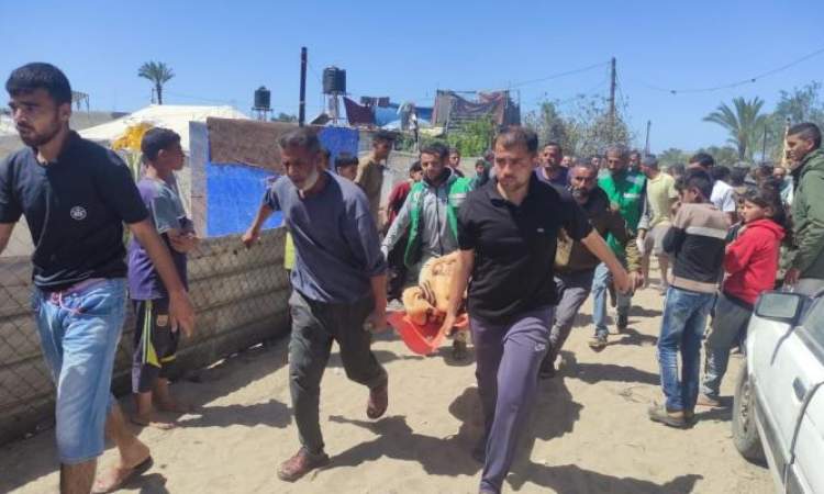 كما استشهد ثلاثة مواطنين وأصيب آخرون جراء قصف مسيرة للعدو الإسرائيلي مجموعة من المواطنين في شارع أبو عريف بدير البلح وسط قطاع غزة .
