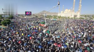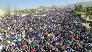 وجددت الجماهير تفويضها المطلق لقائد الثورة السيد عبد الملك بدر الدين الحوثي في اتخاذ الخيارات المناسبة لنصرة الشعب الفلسطيني والرد على جرائم العدو الصهيوني.