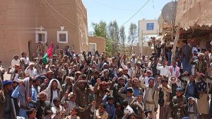 وشهدت اليتمة والقعيف في خب والشعف، والمربع الجنوبي ومركز مديرية رجوزة، ومركز مديرية الحميدات ومناطق الواغرة ونعمان والصلل والشول، مسيرات حاشدة تأكيدا على الموقف اليمني شعبياً ورسمياً وعسكرياً في مساندة الشعب الفلسطيني.