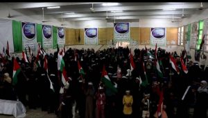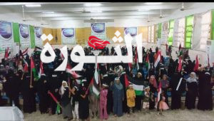 وخلل الفعالية بحضور نسائي كبير ، رُفعت الأعلام اليمنية والفلسطينية، ورددت الهتافات المنددة بالعدوان الصهيوني، والمساندة لخيار المقاومة،