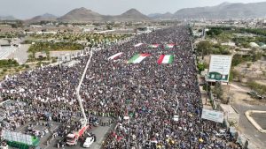 شهدت العاصمة صنعاء اليوم، حشداً مليونياً في مسيرة “ثابتون مع غزة وإيران ضد الإجرام الصهيوأمريكي”، نصرة للشعب الفلسطيني، وتأييداً لموقف الجمهورية الإسلامية الإيرانية في ردها على العدوان الإسرائيلي.